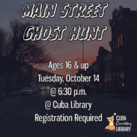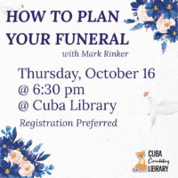 Have you ever wondered what history lies beyond the grave in your small town? Well now, you can come find out for yourself! Join us on Tuesday, October 14 at 6:30 pm at the Cuba Circulating Library for a walking …