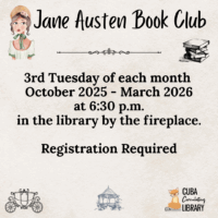 Dear Reader, join us as we honor the beloved author Jane Austen by reading all of her novels—in order! Experience her wit, romance, and keen observations of society from Sense and Sensibility to Persuasion. The club will meet Tuesdays, Oct. …