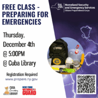 With severe weather events becoming more frequent and more extreme, it is more important than ever that New Yorkers are prepared for disasters. Join us at the Cuba Library on Thursday, December 4 at 5 pm at the Cuba Library …