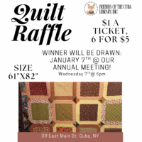 A neighbor of the Friends of the Cuba Library has made a generous donation of a BEAUTIFUL quilt to be raffled off . $1 a Ticket or 6 for $5! The drawing will be held at their Annual Meeting on …